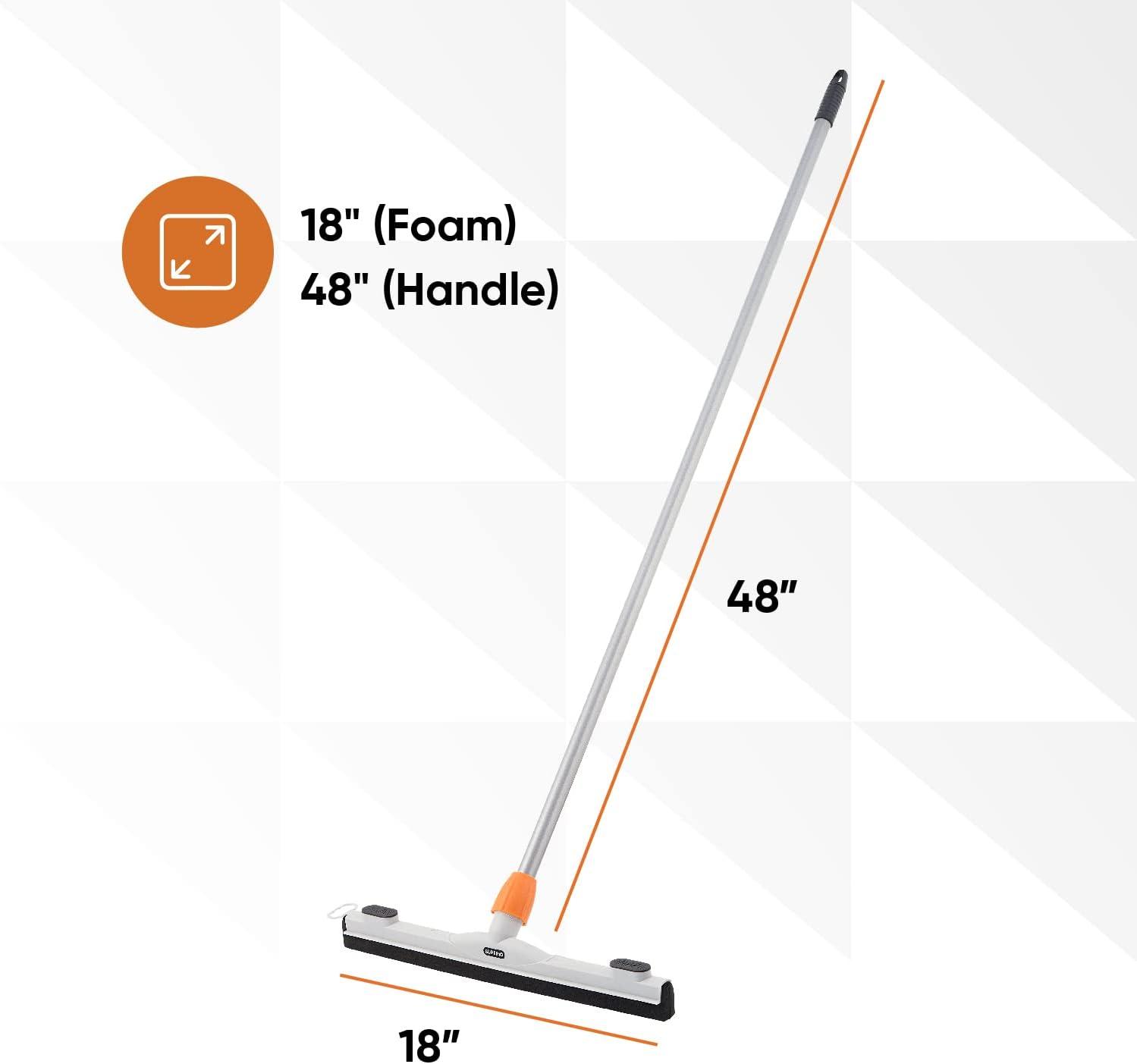 Floor Squeegee for Concrete, Tile, Laminate, Garage, Bathroom Floor 48″ Long Handle Window Squeegee 18″ Foam Floor Squeegee Heavy Duty-Superio…(Squeegee Head)