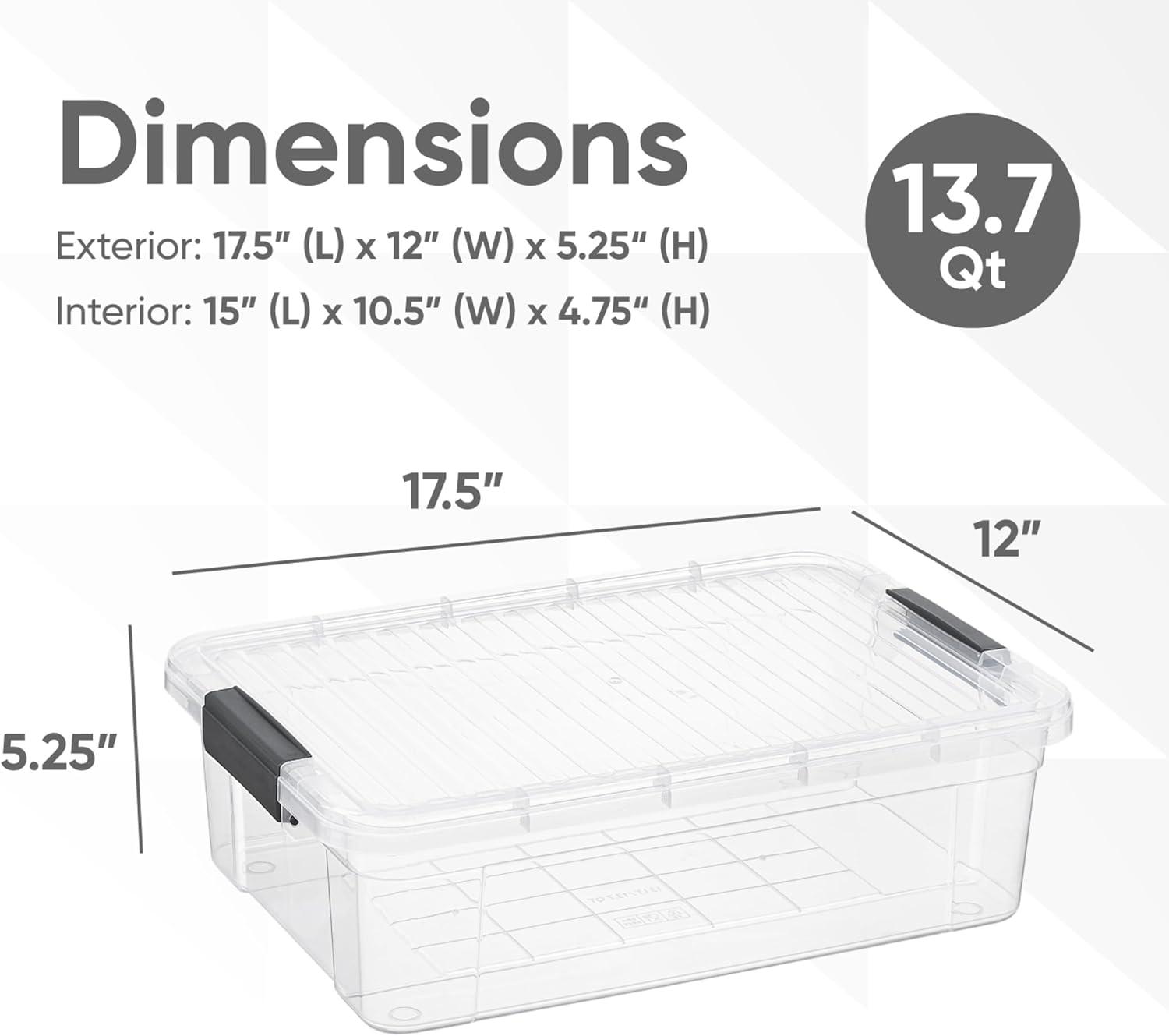 SPACE SAVING LATCH BOX- The Exterior of this organizer measures 14.15″ x 10″ x 6.5″, and the Interior measures 11.75″ x 8.25″ x 6.15″. This storage box is perfect for clothing, accessories, crafts, tools, school supplies, cosmetics, etc. It is most helpful in closets, on shelves, for classrooms, dorms, and other home storage and organization.organizing crates are more transparent than most containers on the market. That's awesome because it lets you easily stay organized without having to open your boxes or move them to check what's inside. This is especially helpful for tools, food, and clothing.