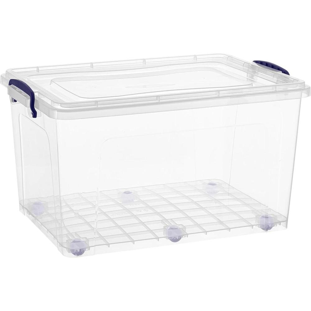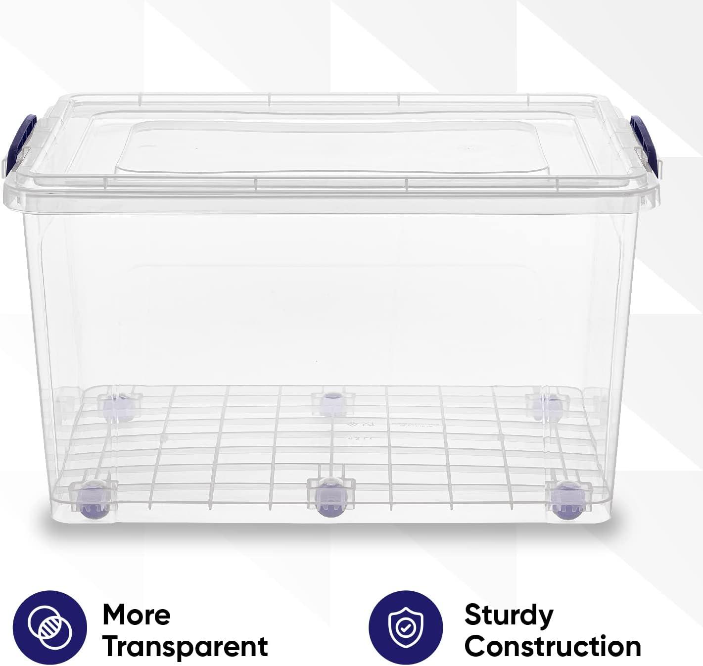 imageSuperio Clear Storage Box with Wheels 85 Qt Heavy Duty Container with Lid Stackable Rolling Bin for Home Garage Closet Organization Toys Linen Tools Clothing Supplies Camping Accessories215x145x95 Wheeled