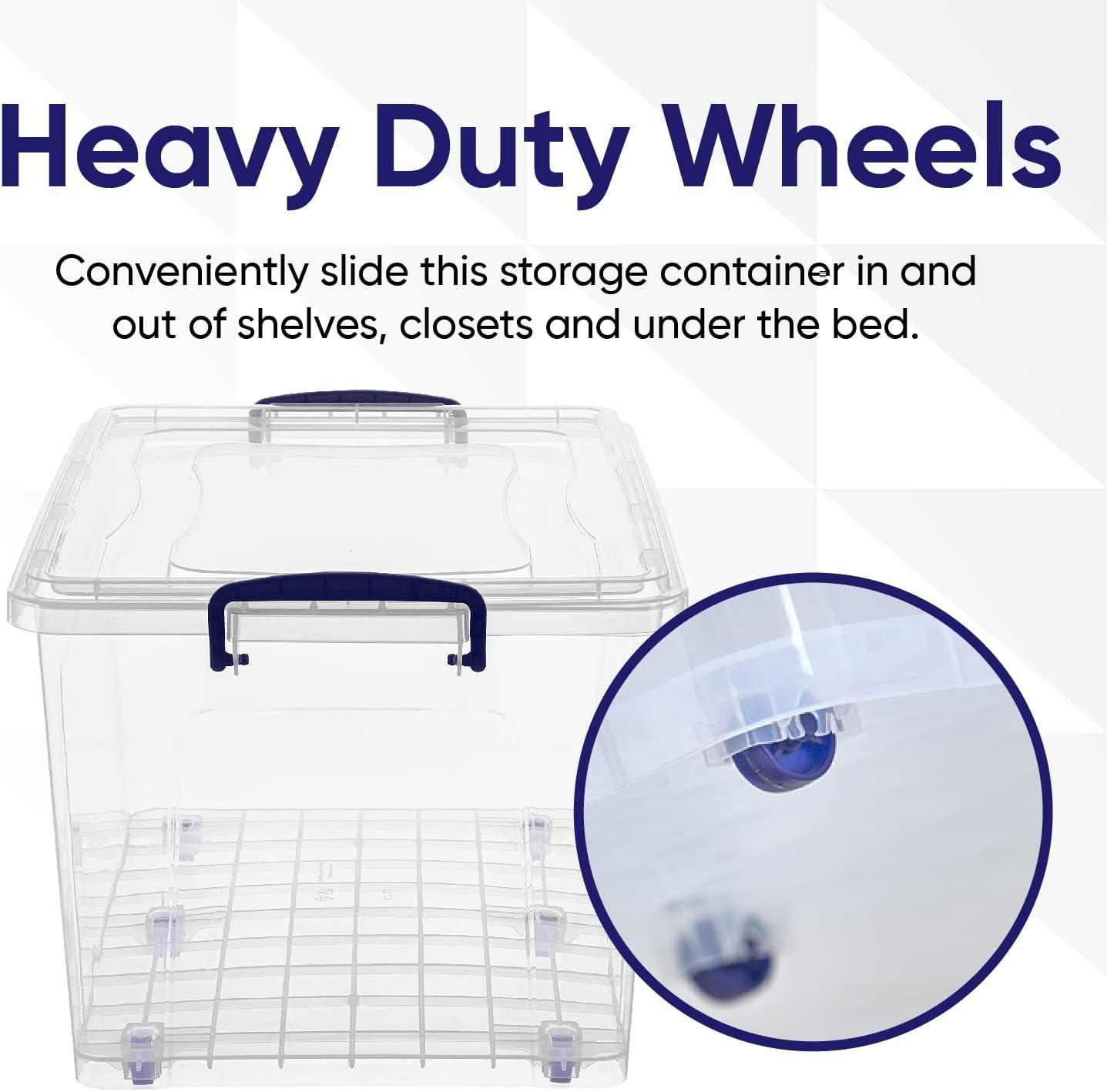 Superio Clear Storage Box with Wheels, 85 Qt Heavy Duty Container with Lid, Stackable Rolling Bin for Home, Garage, Closet Organization- Toys, Linen, Tools, Clothing, Supplies, Camping Accessories(21.5"x14.5"x11.75")