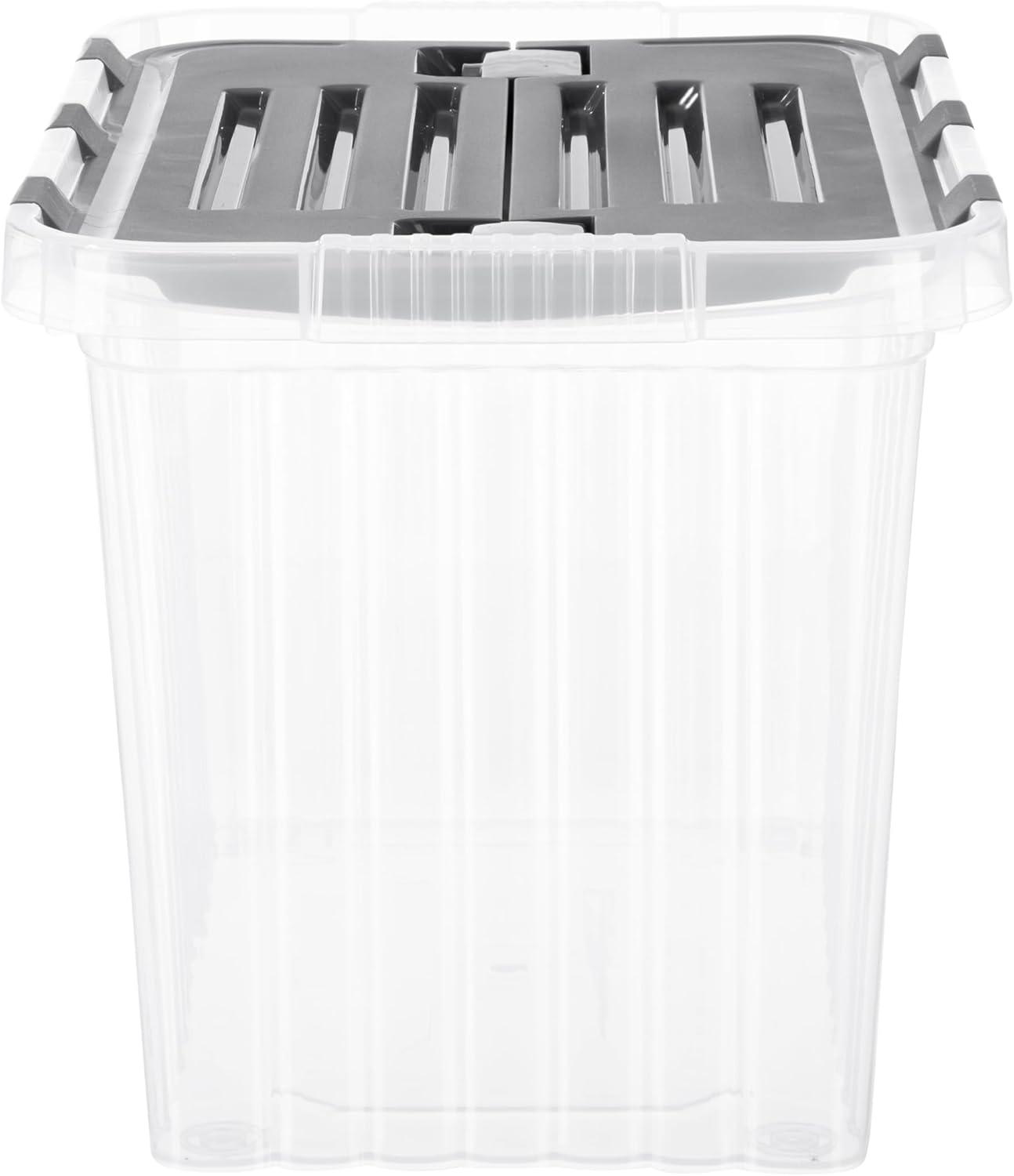 Superio Clear Storage Container with Lid, 35 Quart, Hinged Lid Storage Tote, Organizer Box for Closet, Home, Dorm(Grey)