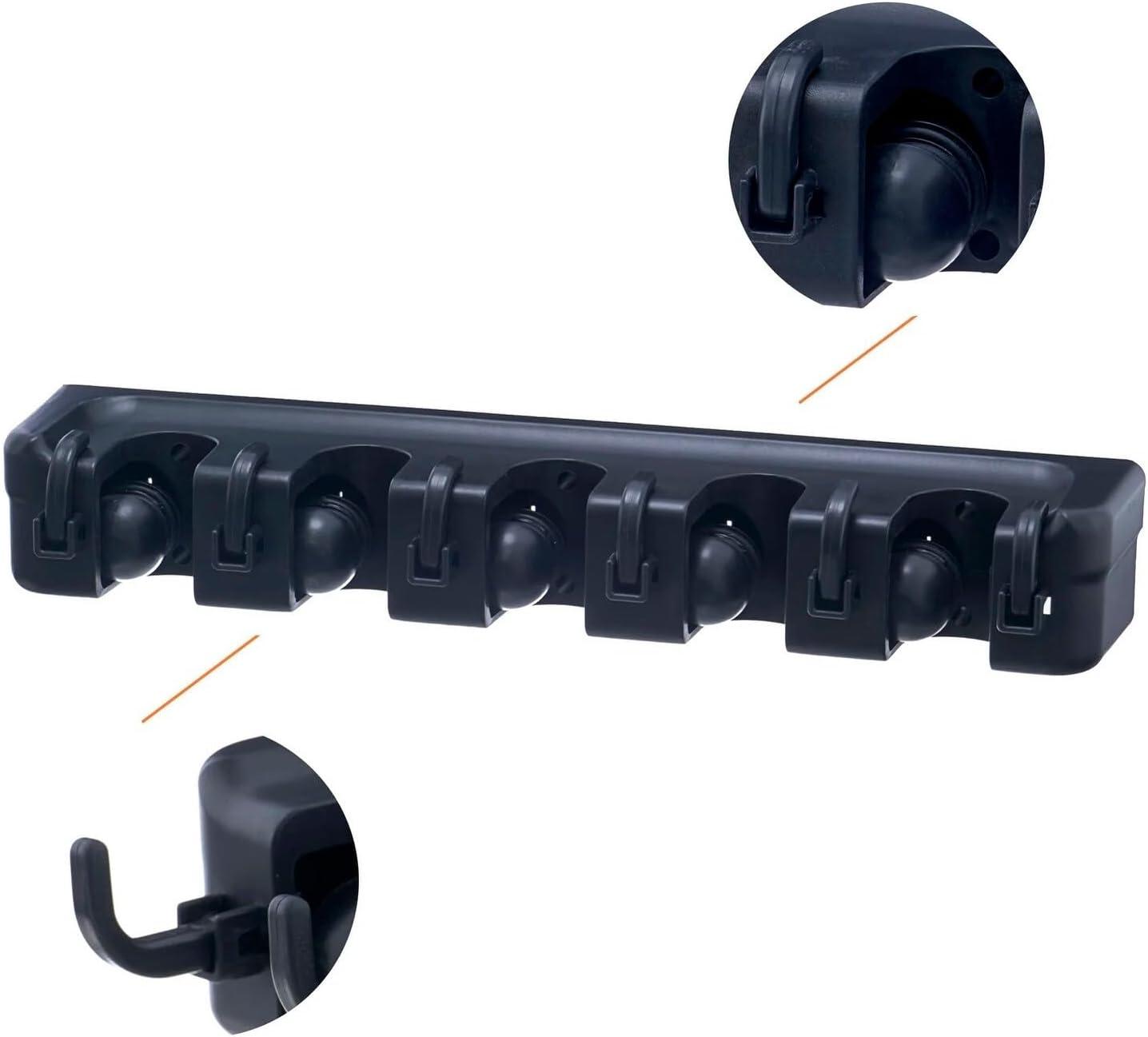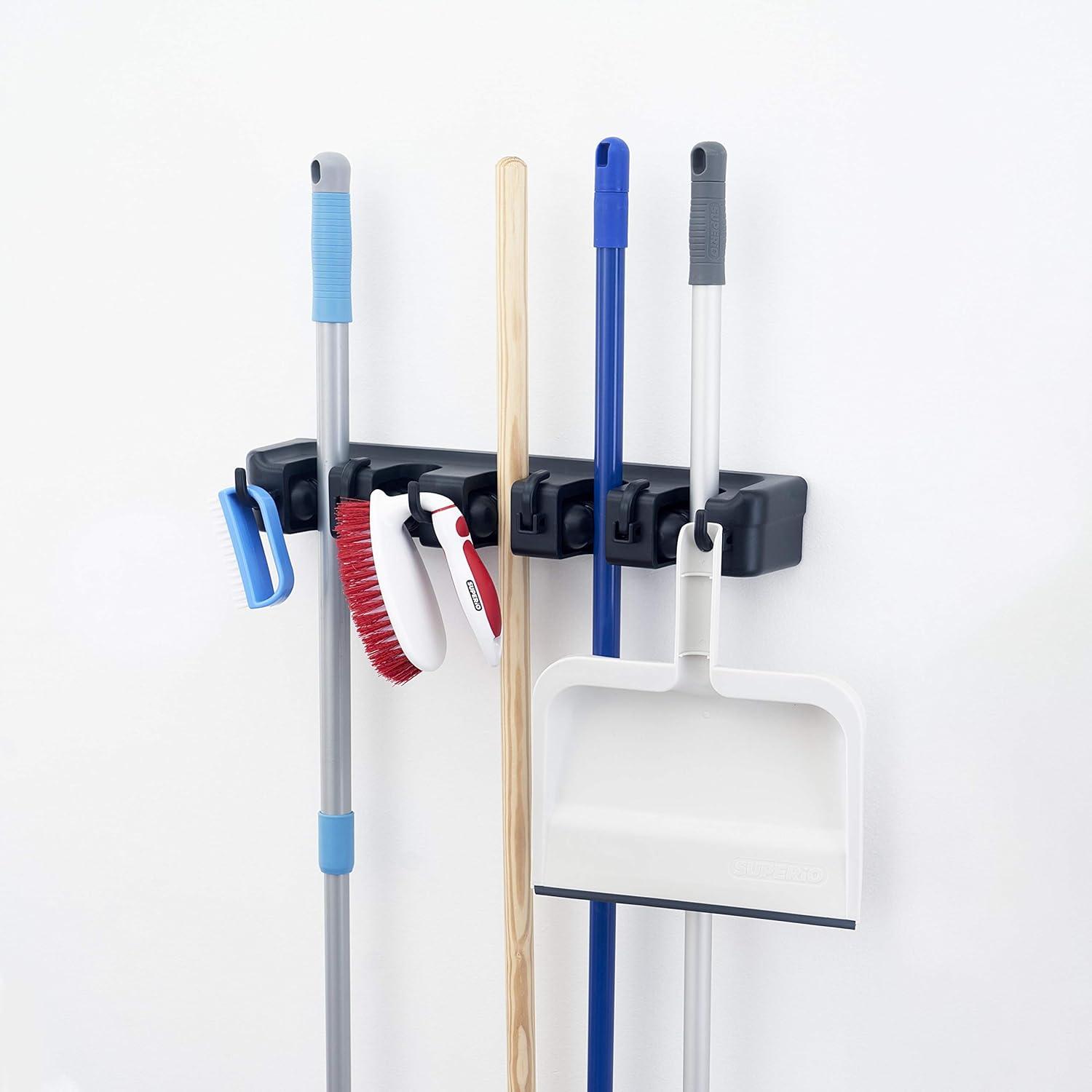 Get your hands on our newest Superio Mop and Broom Holder Wall Mount (Black) Cleaning Tools Wall Organizer, 5 Rack Slots and 6 Hooks for Kitchen Closet Garage Garden and Office(Black) and enjoy a limited-time discount offer.