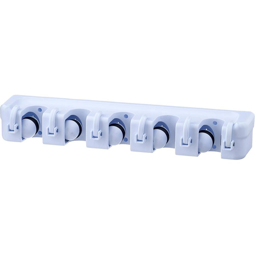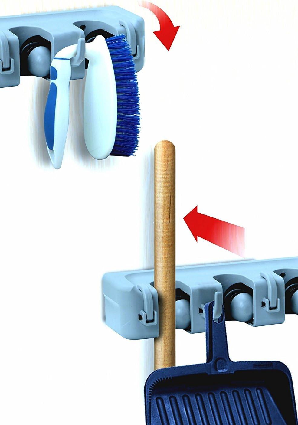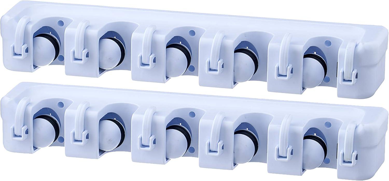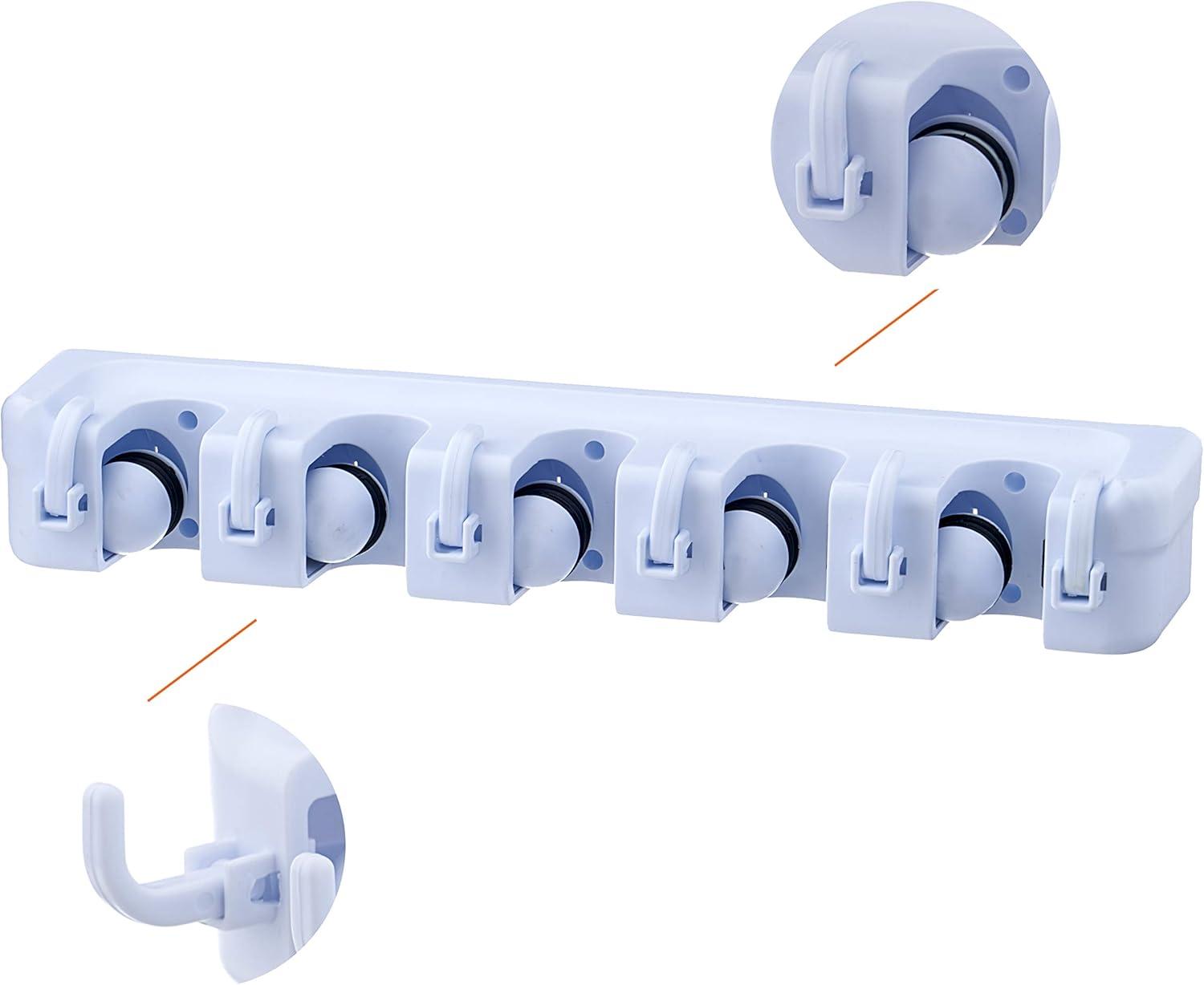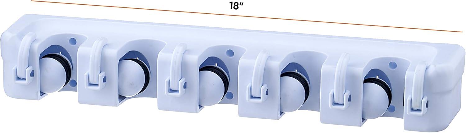 imageSuperio Mop and Broom Holder Wall Mount Black Cleaning Tools Wall Organizer 5 Rack Slots and 6 Hooks for Kitchen Closet Garage Garden and OfficeWhite