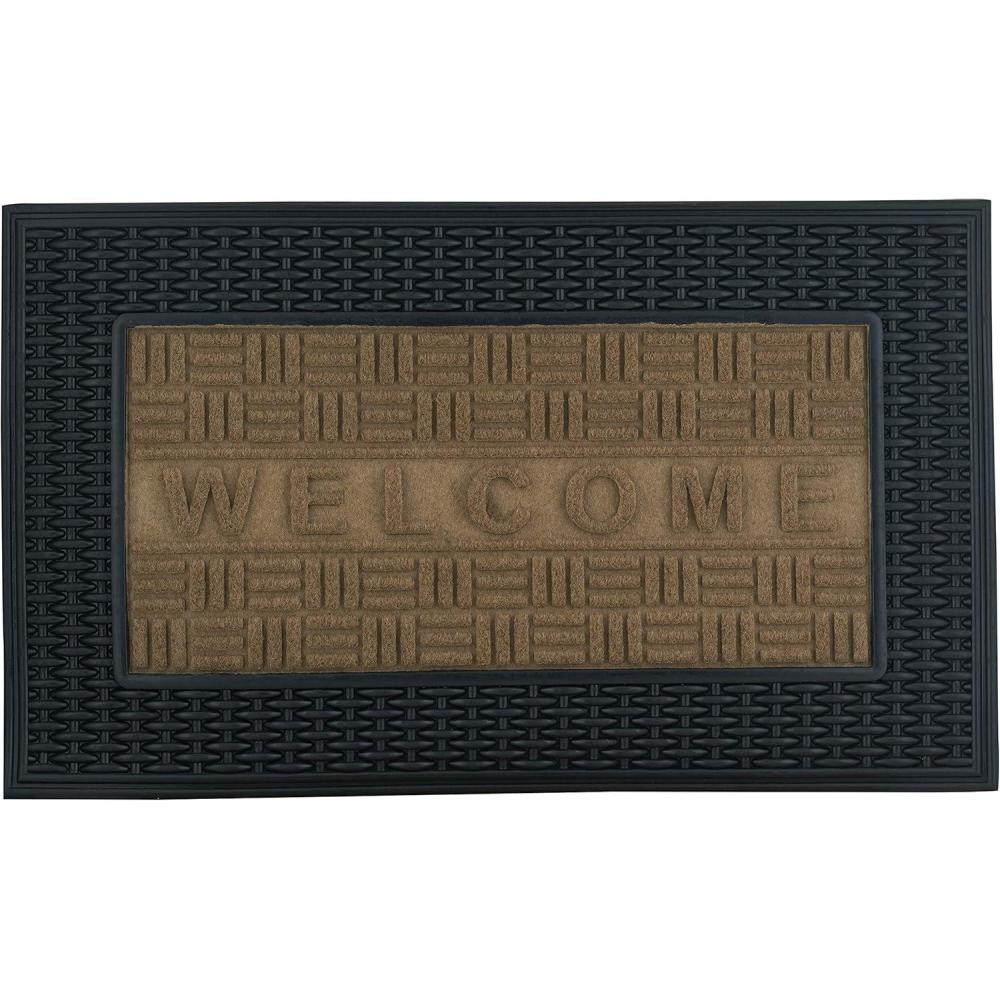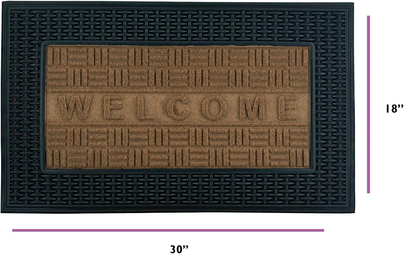 Superio Non-Slip Welcome Doormat for Entry, Indoor Outdoor, Heavy Duty, Waterproof, Easy Clean, Low-Profile Mats for Entry, Garage, Patio, High Traffic Areas, Beige Basket Weave, 18"x30"