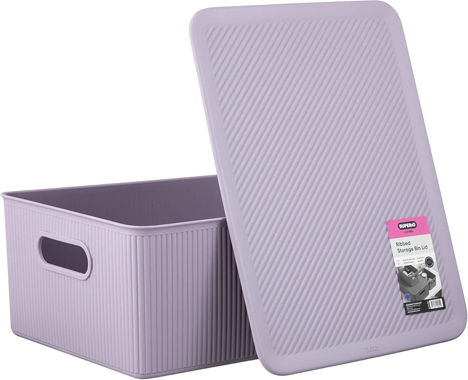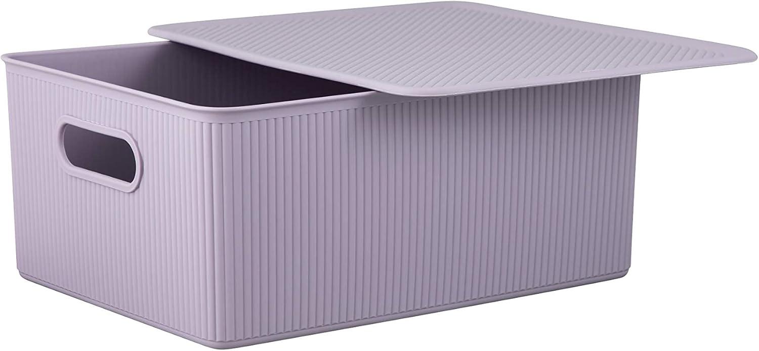 Superio Ribbed Collection – Decorative Plastic Lidded Home Storage Bins Organizer Baskets, Large Lilac Purple (1 Pack – 15 Liter) Stackable Container Box, for Organizing Closet Shelves Drawer Shelf(X-Large (22 Liter))