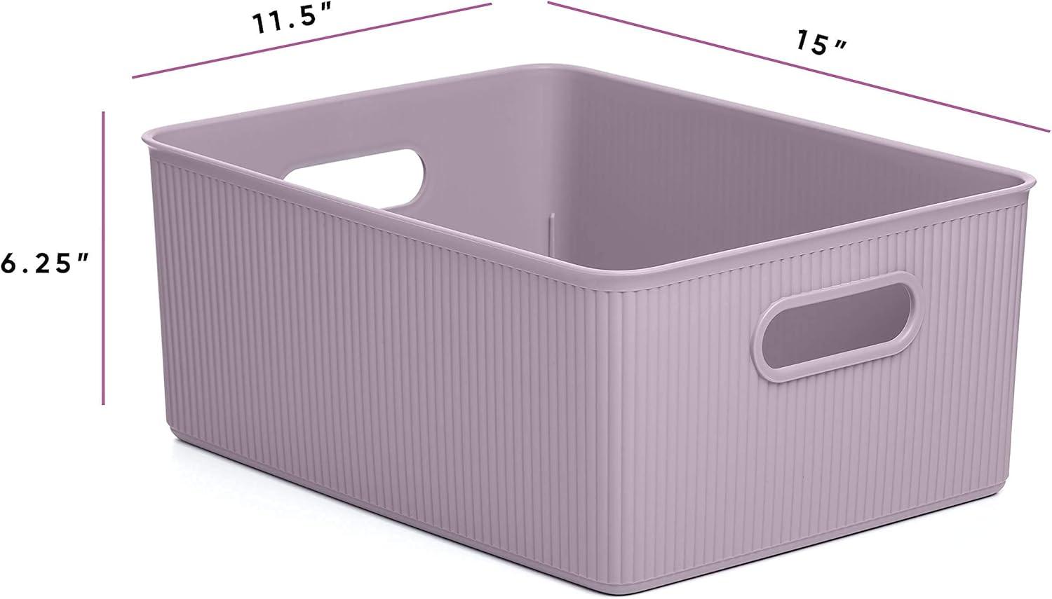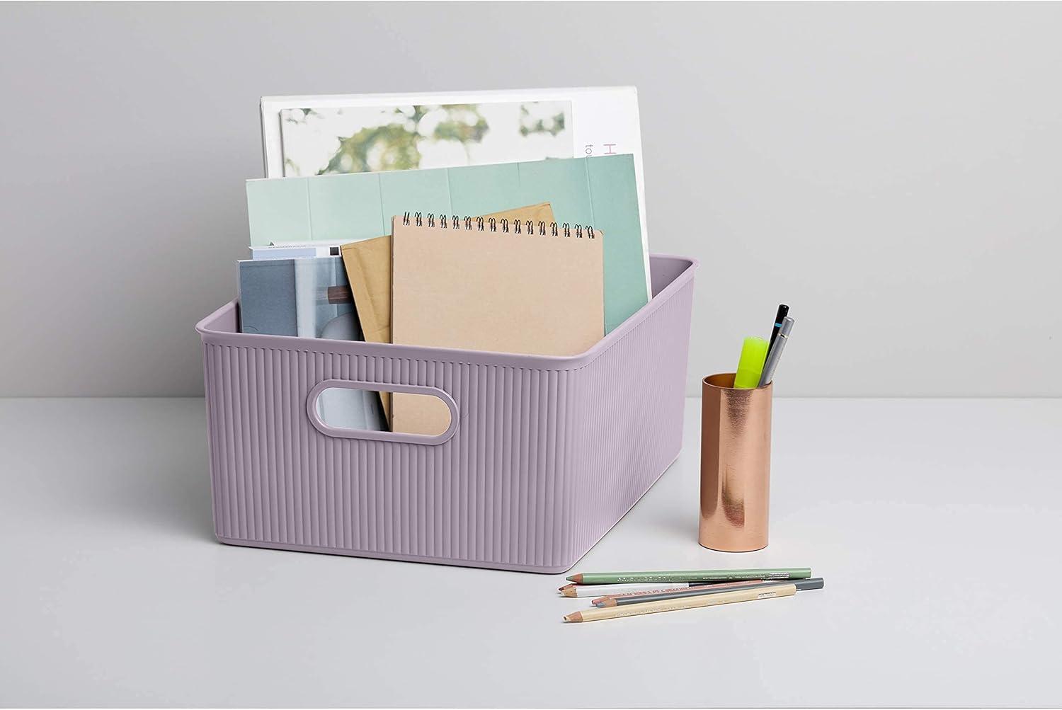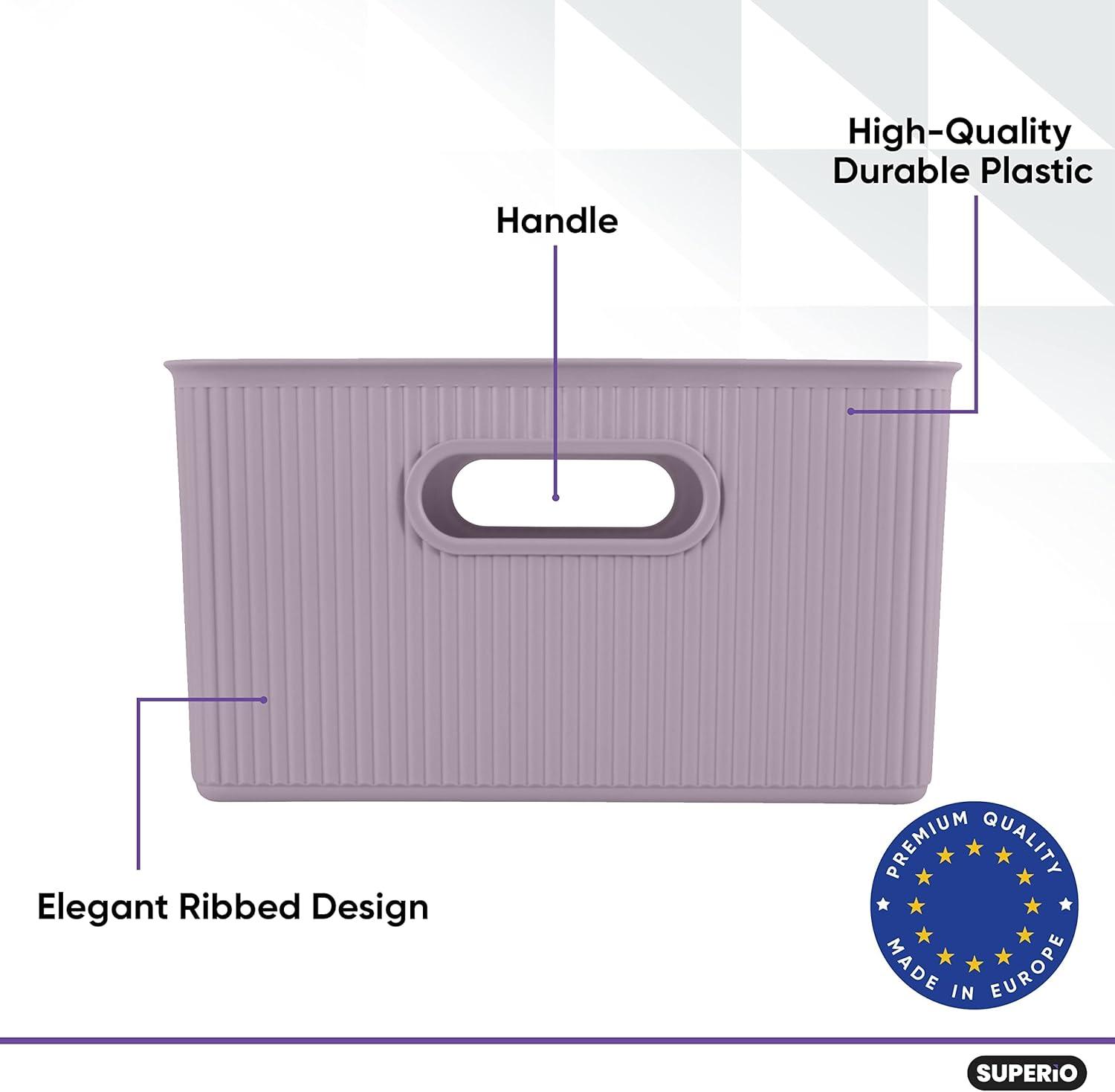 Superio Ribbed Collection – Decorative Plastic Lidded Home Storage Bins Organizer Baskets, Large Lilac Purple (1 Pack – 15 Liter) Stackable Container Box, for Organizing Closet Shelves Drawer Shelf(Medium (5 Liter))
