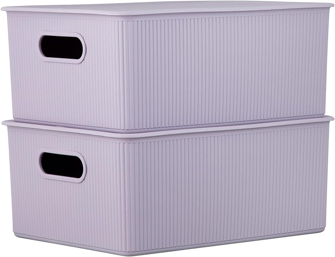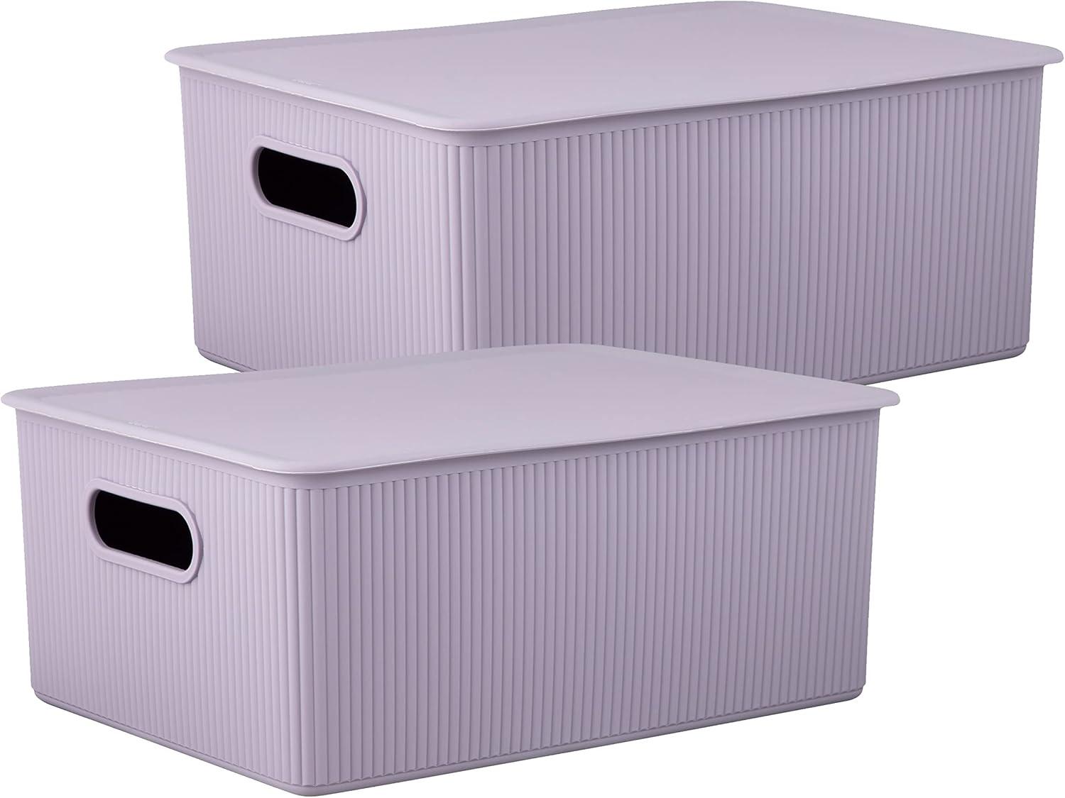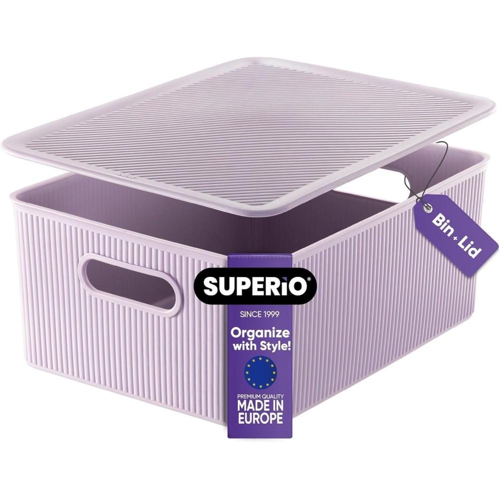Superio Ribbed Collection - Decorative Plastic Lidded Home Storage Bins Organizer Baskets, Large Lilac Purple (1 Pack - 15 Liter) Stackable Container Box, for Organizing Closet Shelves Drawer Shelf(Large (15 Liter))