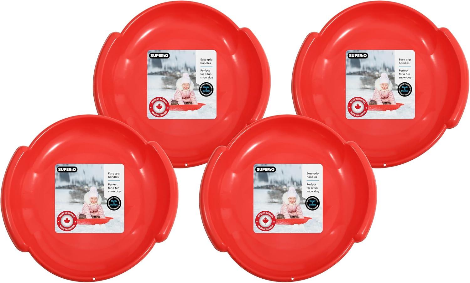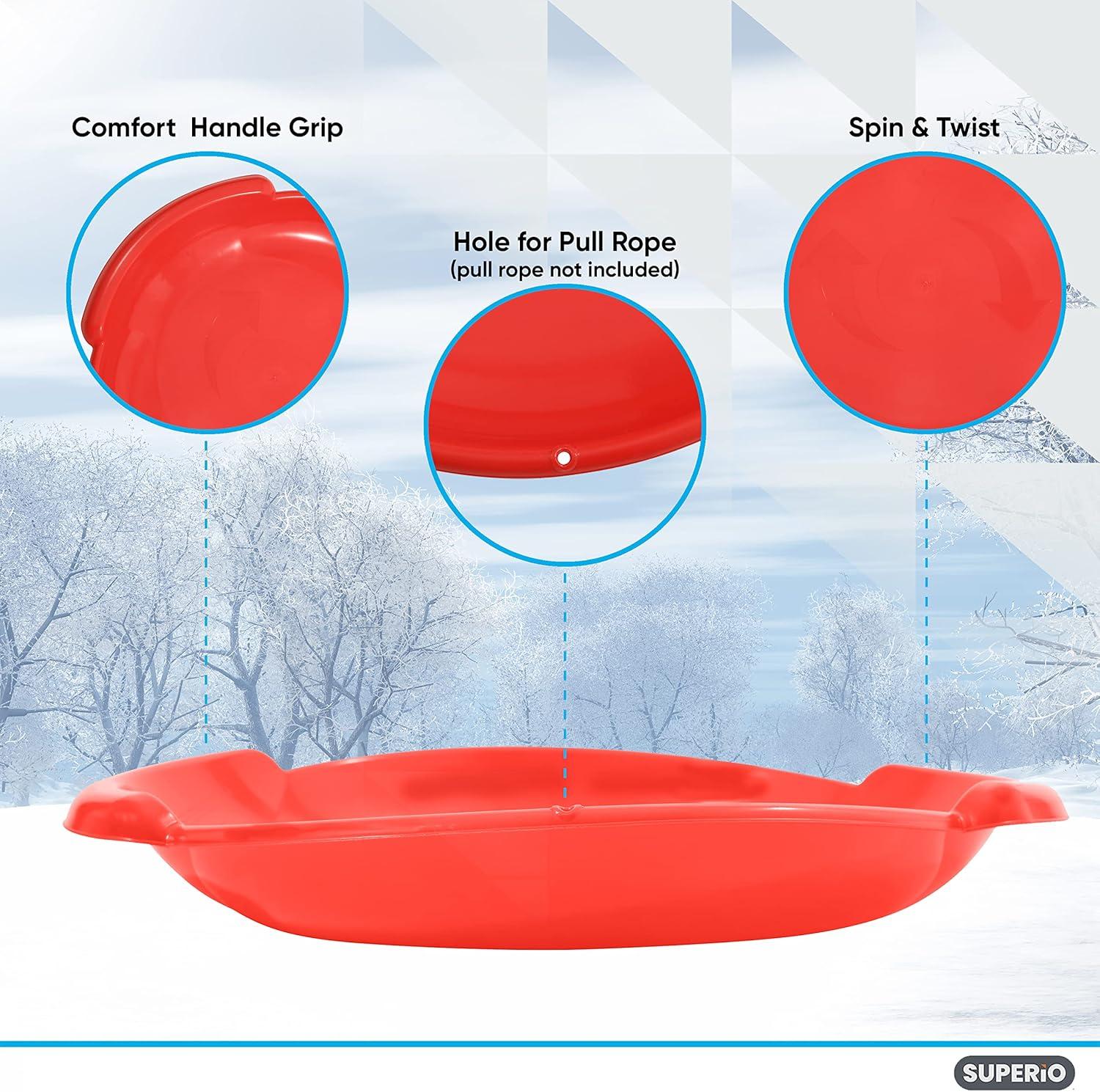 Superio Round Snow Saucer Sled- 24″ Plastic Disc Sled for Kids and Adults- Heavy Duty Sled with Handles for Downhill Sledding, Winter Outdoor Sports(Red)