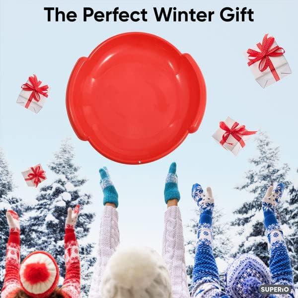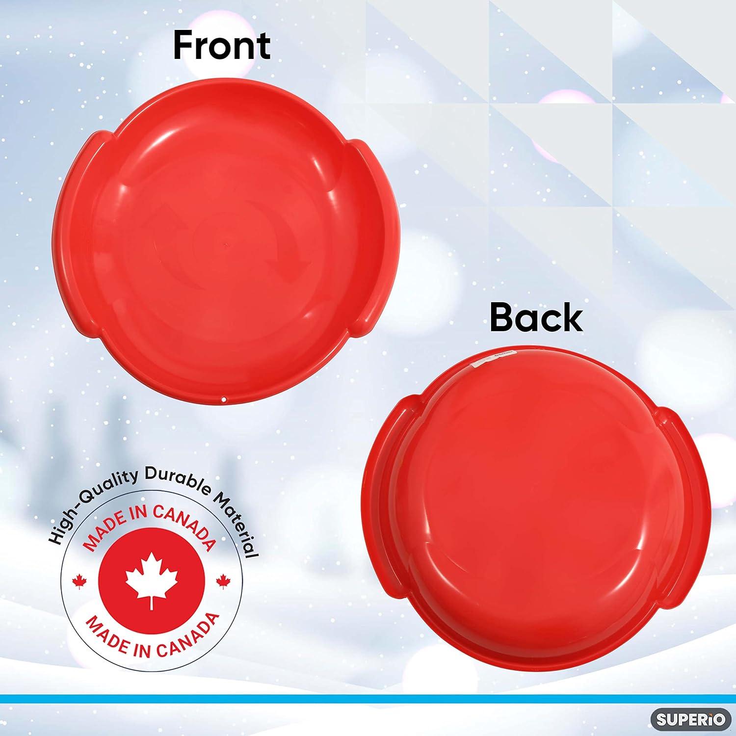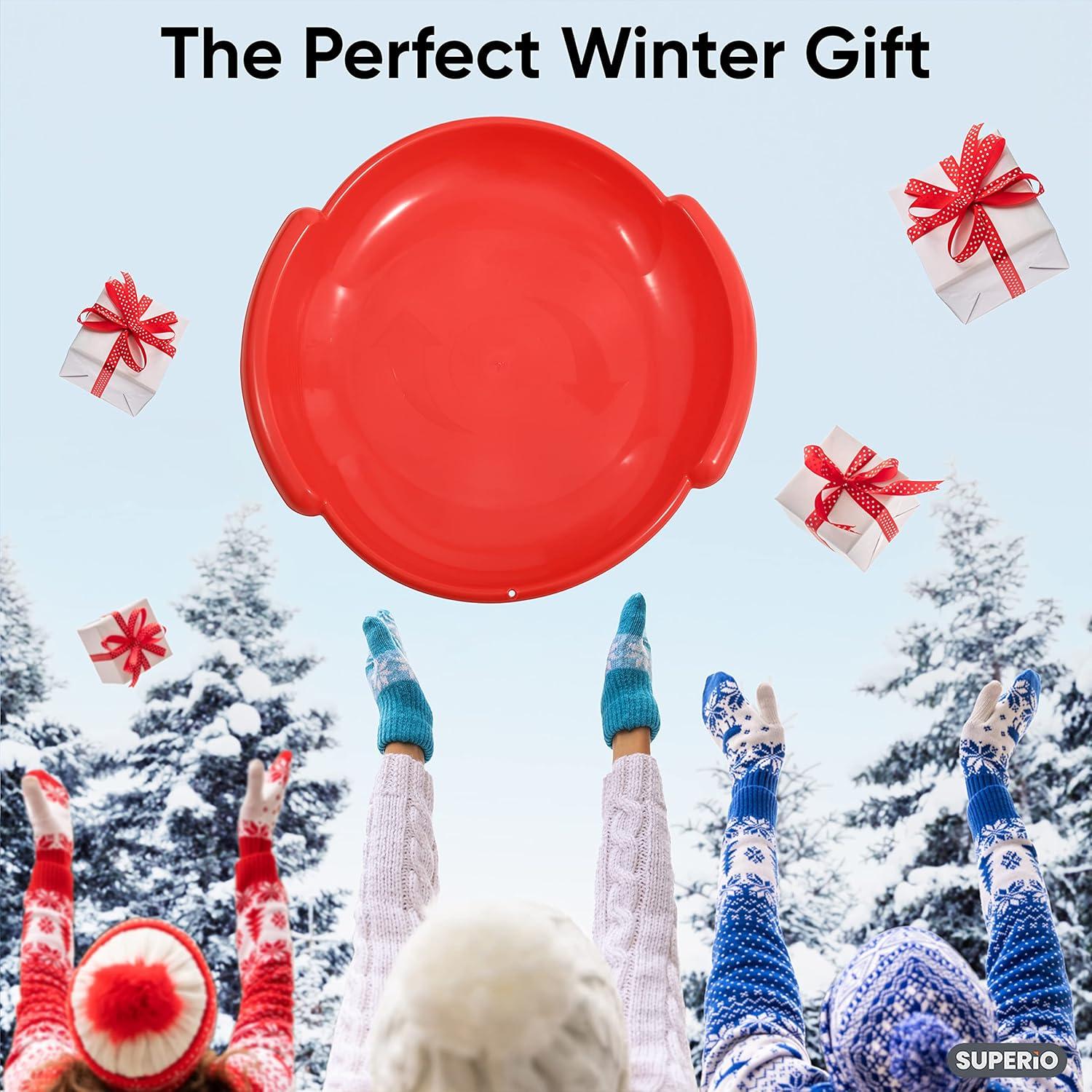 Superio Round Snow Saucer Sled- 24" Plastic Disc Sled for Kids and Adults- Heavy Duty Sled with Handles for Downhill Sledding, Winter Outdoor Sports(Red)