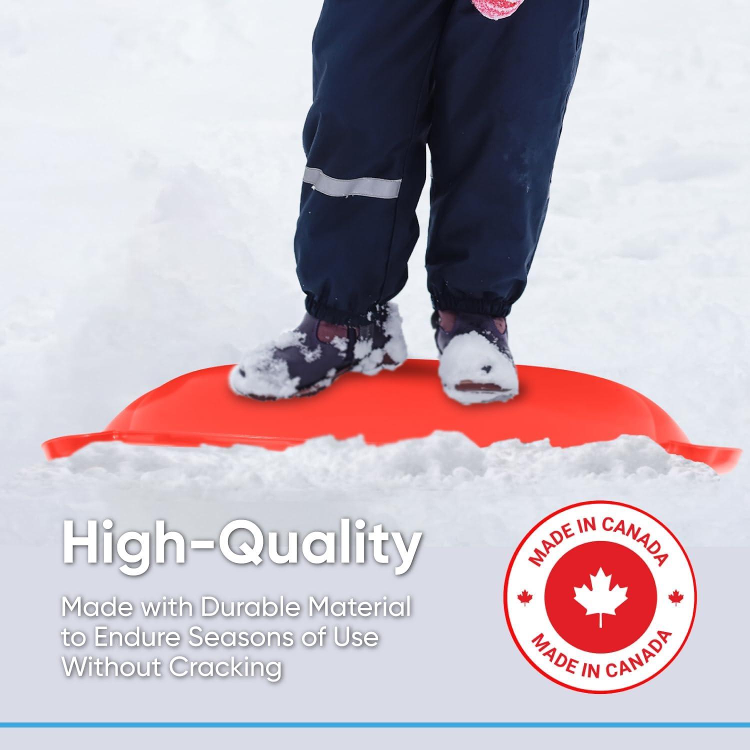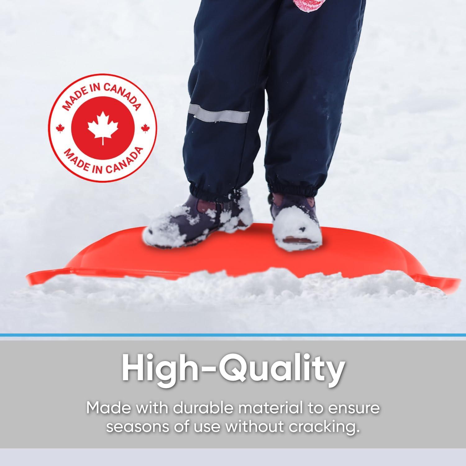 Ideal for Family Fun: Perfect sled for kids and adults ages 6 and above. This 24 Inch Diameter plastic saucer provides a smooth and speedy ride down the snowy hill with steady control over the sled