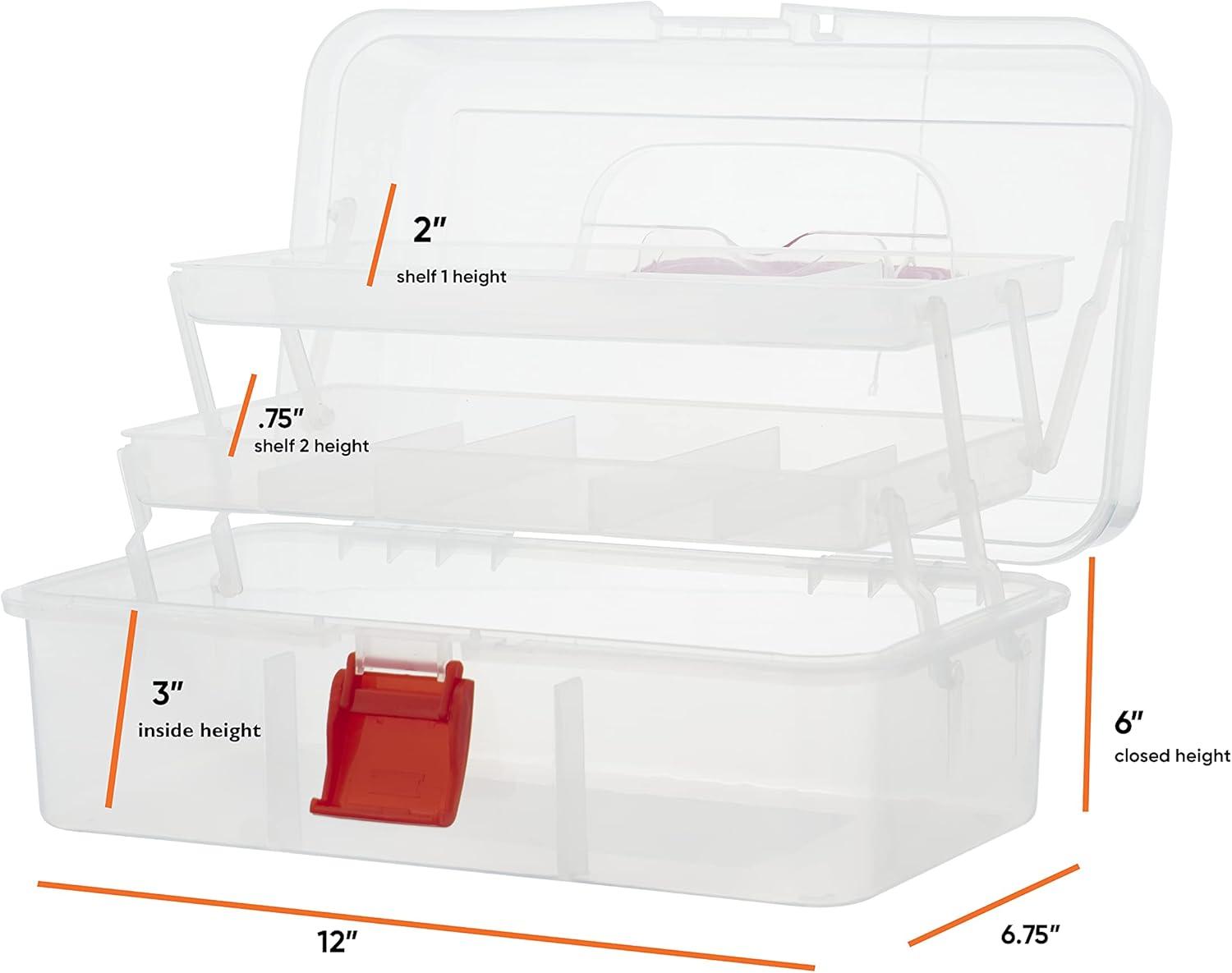 Premium Quality: Made of high-quality plastic. This sewing box has a compact size, but it can fit all your items. Dimensions are: 13” x 7” x 6” (LWH). The height of the layers from bottom to top are: 3”, 0.75”, and 2” in accordingly.